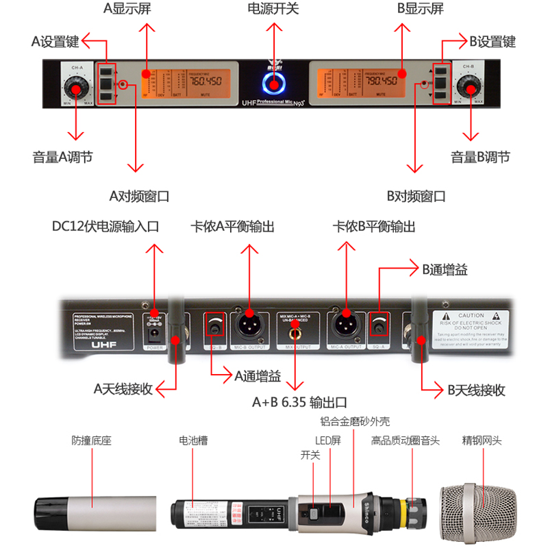 BBS wireless microphone ktv microphone home with karaoke singing stage collar clip type one tug 2 professional meeting
