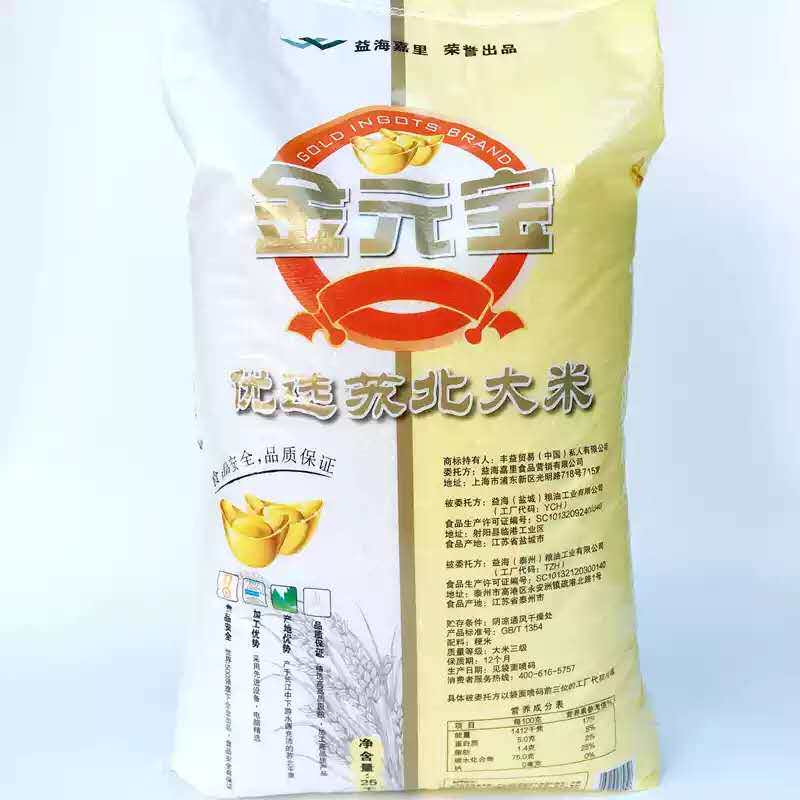 Jinyuanbao selects North Jiangsu rice 50 catties canteen restaurant dining rice Jiangsu rice 25KG round-grained rice