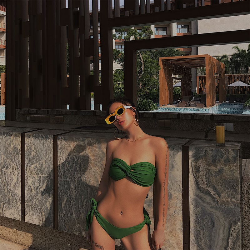 Online Red Sexy European and American Wind island holiday Three-point bikini small breasts gather two pieces for a thin swimsuit woman