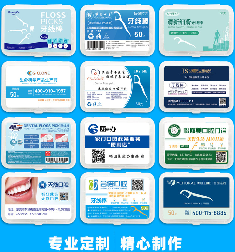 Custom Tick Tooth Line Oral Hospital Dental Dentistry Clinic 30 Portable Boxed Dental Floss Loggo logo