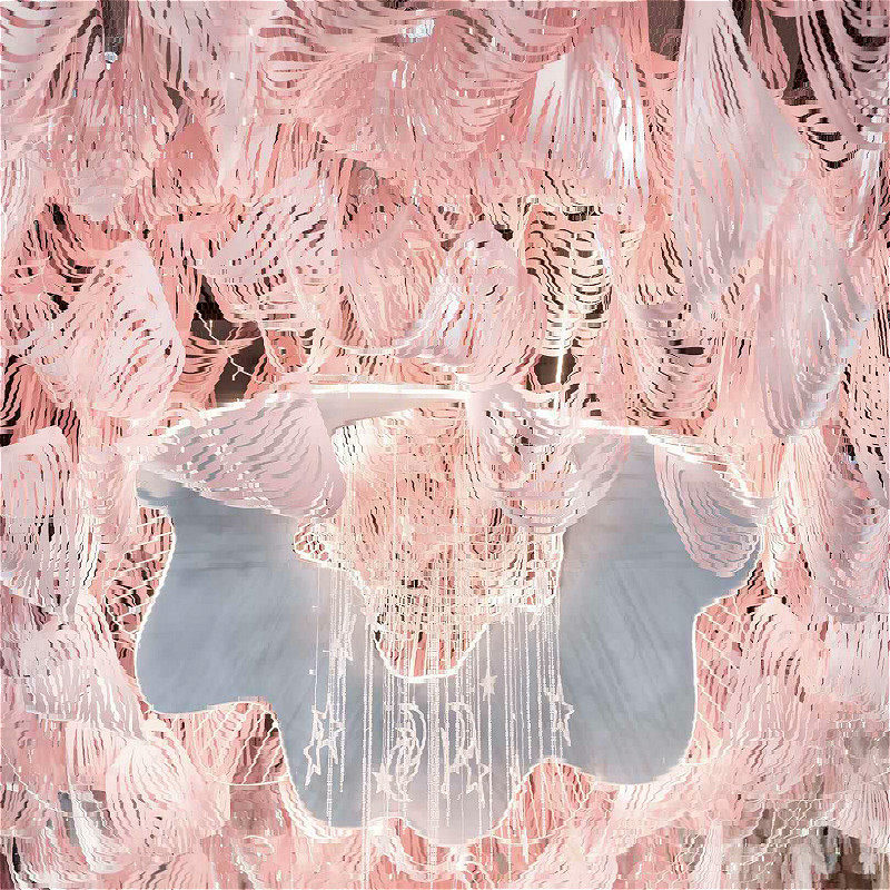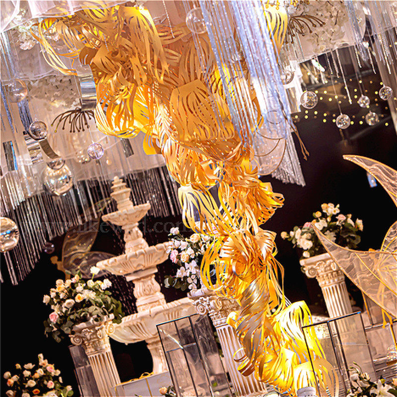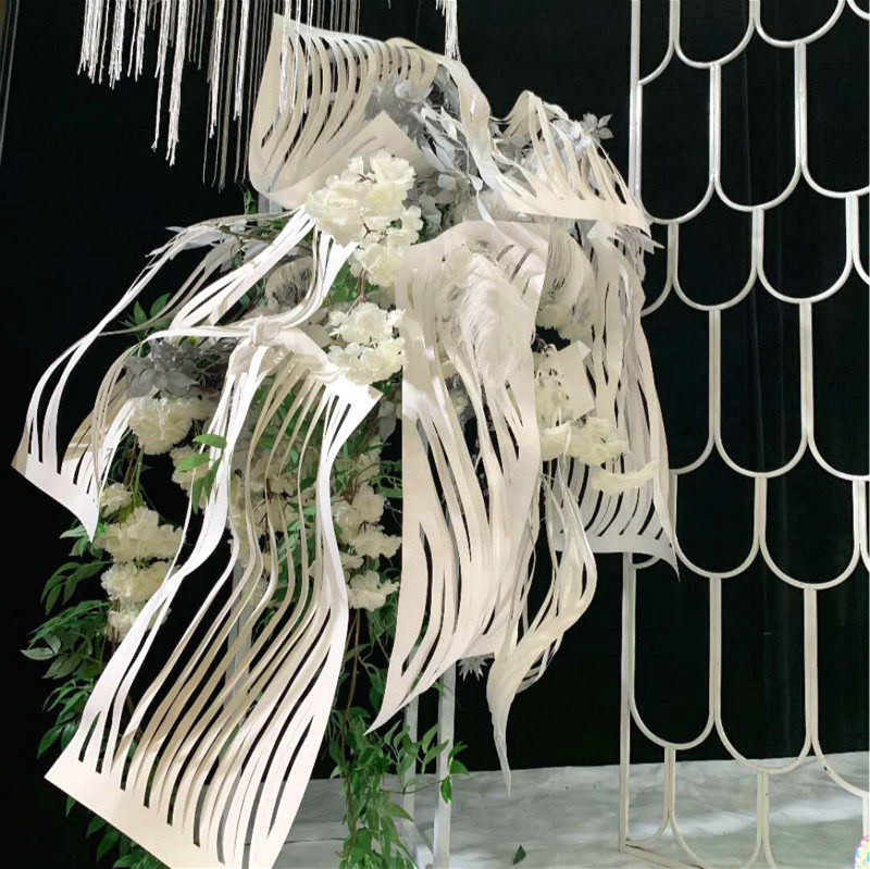 Wedding paper carving curve ribbon ceiling decoration wedding hotel banquet paper-cut design modeling shopping mall display props