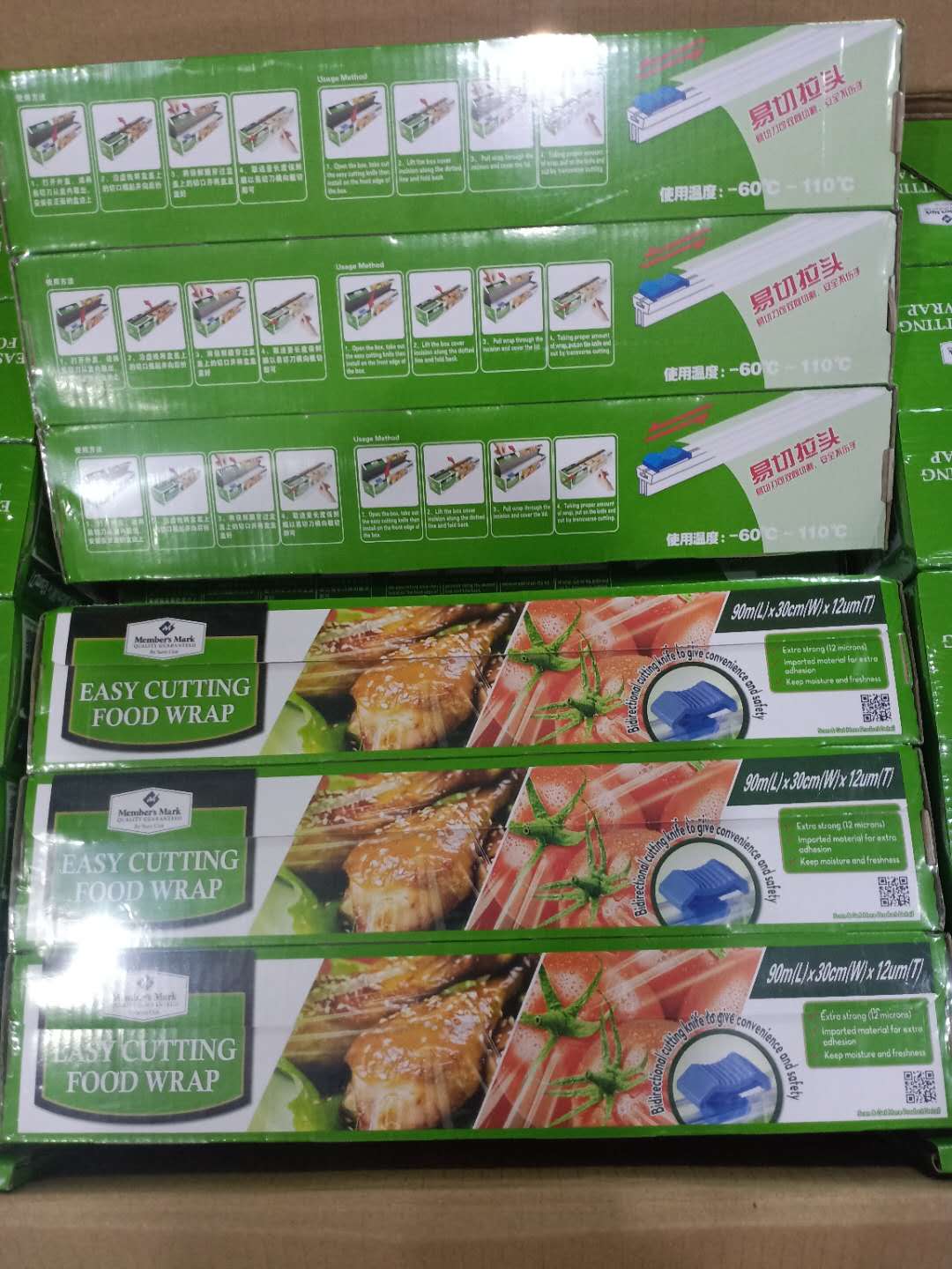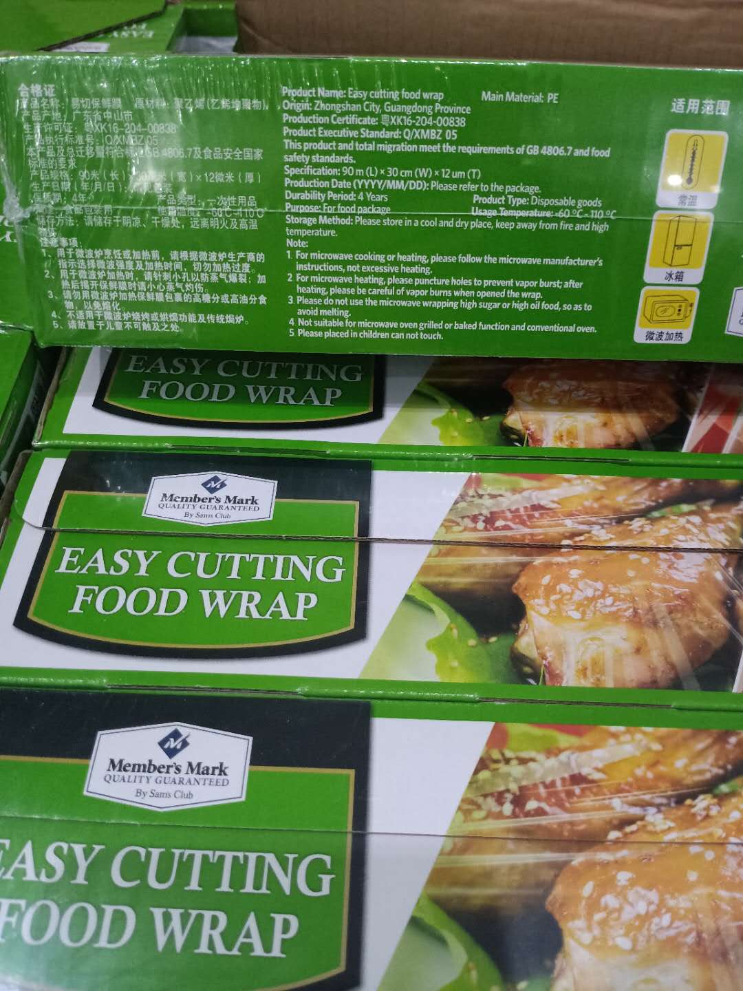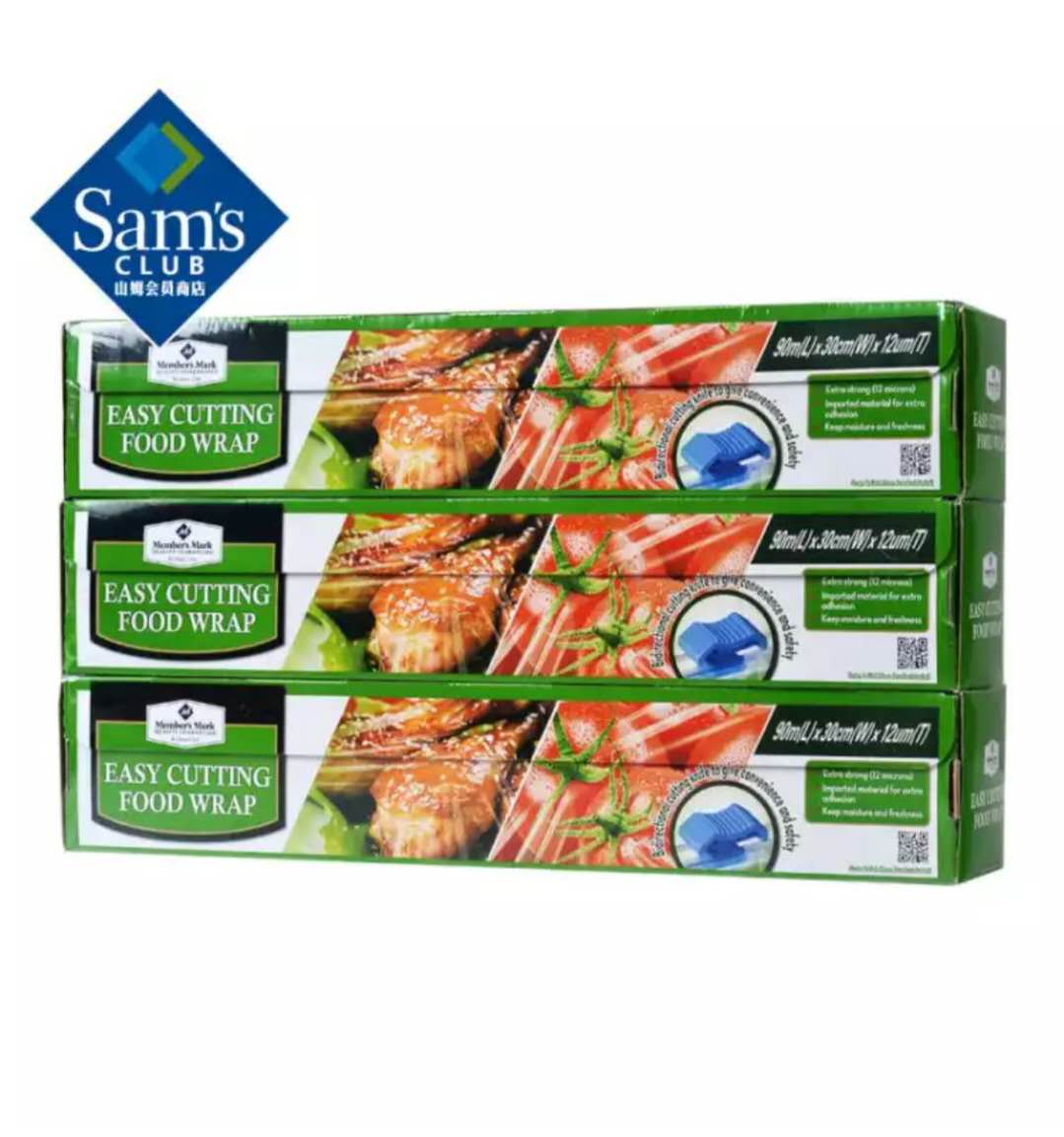 Sam's Member Easy-cut cling film 90m*3 rolls thickened zipper type two-way cutting knife one-time fresh-keeping