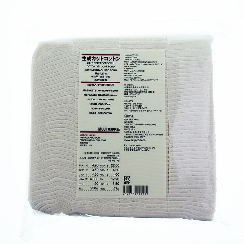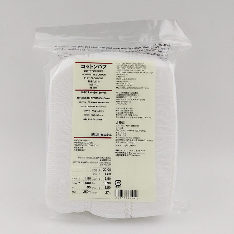 Japan MUJI MUJI MUJI No bleaching cotton makeup remover cotton wet face moisturizing facial cleanser 189 pieces