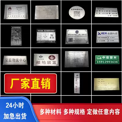 Metal signage customized stainless steel machine mechanical control panel distribution box equipment nameplate customized corrosion Aluminum copper iron plate printing LOGO label high gloss brand making PVC laser sign