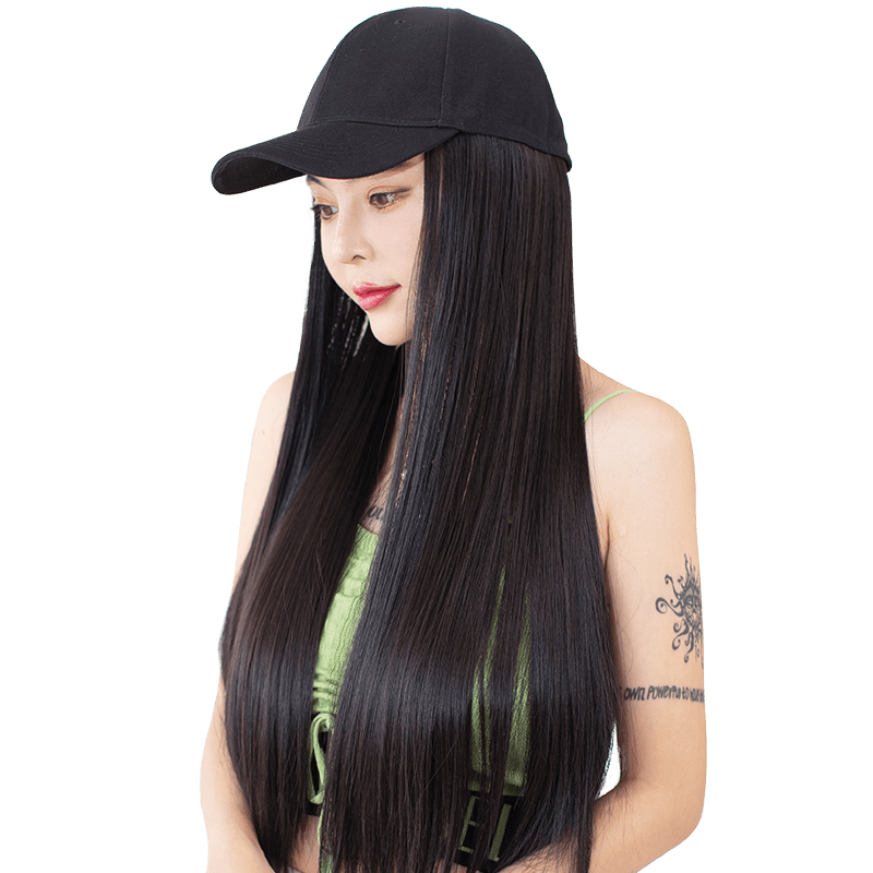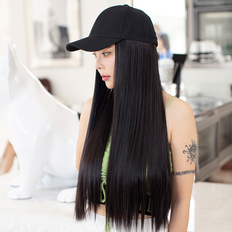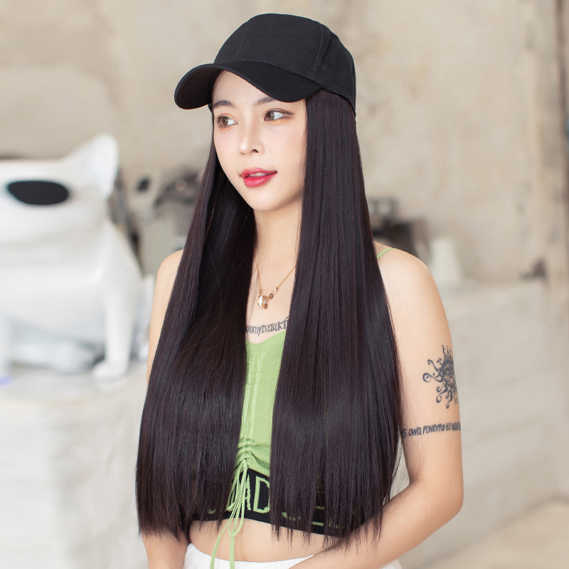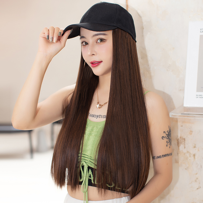 Wig hat one fashion women autumn and winter long hair natural wearing hat with wig long straight hair simulation full headgear