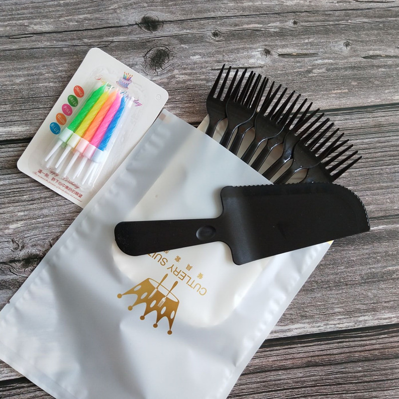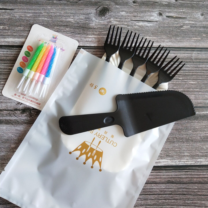 100 sets of birthday cake cutlery disposable knife fork tray candle Four-in-one plastic knife fork tray combination
