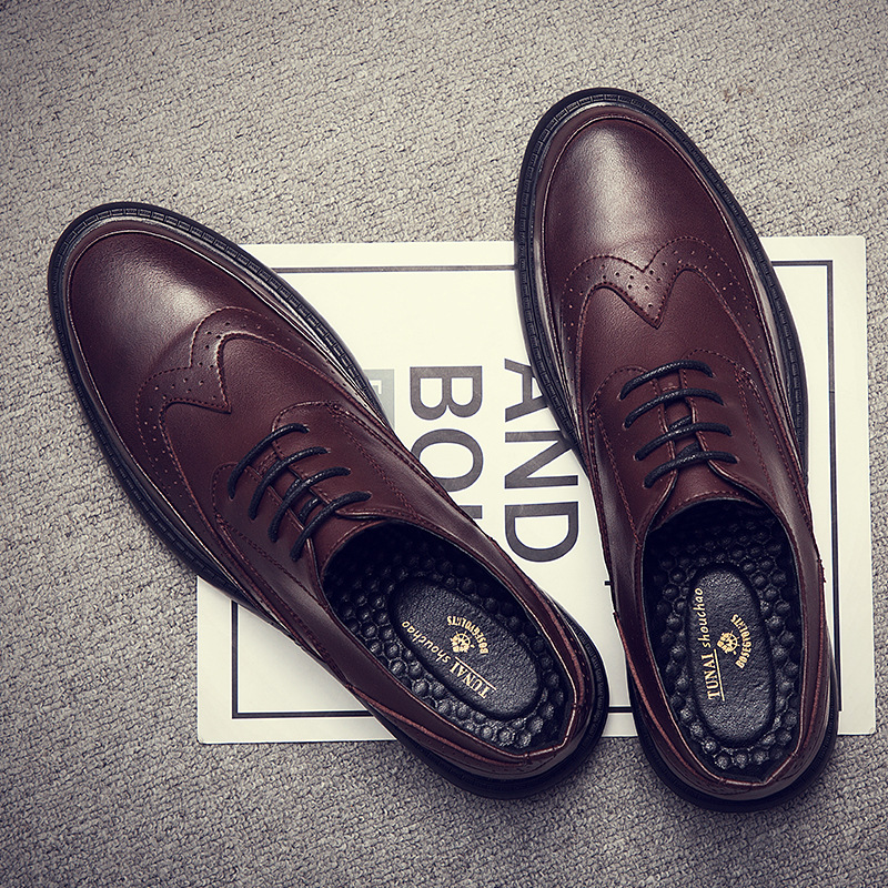 Leather shoes Men's Korean version 100 hitch Inlan Black Trend Business Clothing Men Brock Casual Leather leather Leather Sculpture