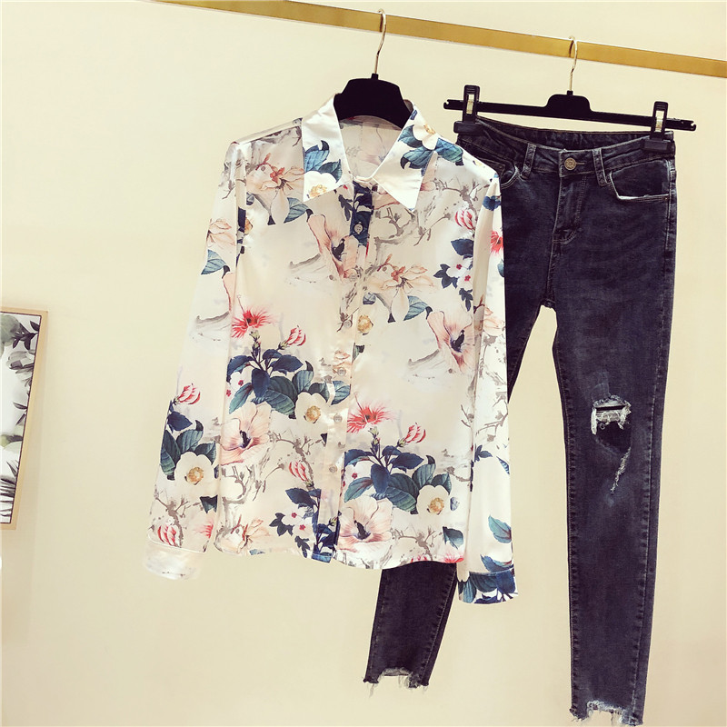 Korean Crushed Flowers Shirt Woman 2022 Chunqiu New Long sleeves Snow Textile Design Sensation Niche Fashion Foreign Pie Light Cooked Shirts