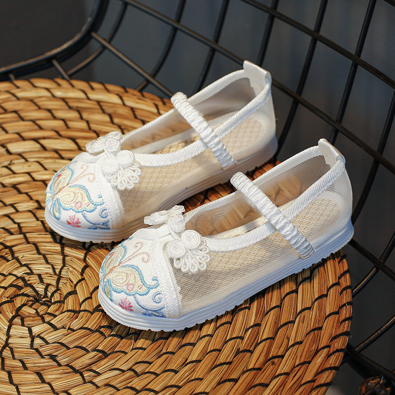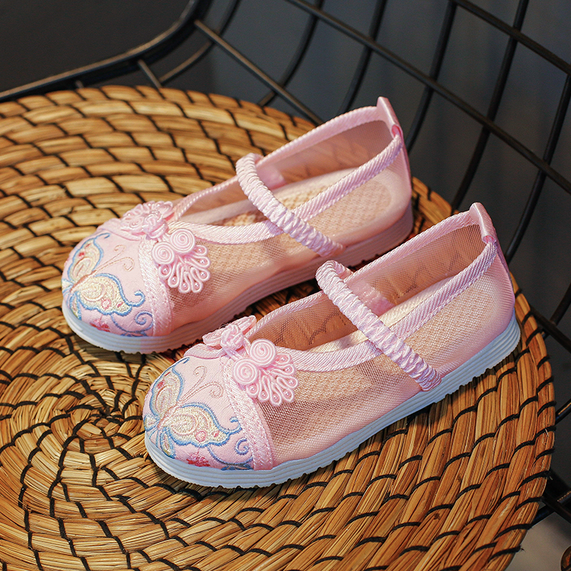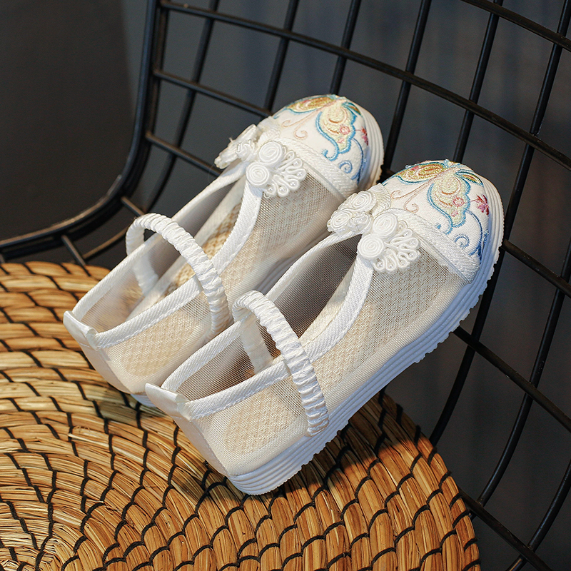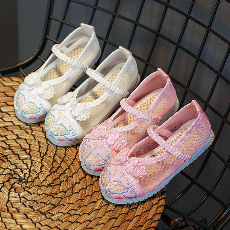 Summer baby embroidered shoes 2022 new Hanfu shoes children's Chinese style shoes net shoes girls old Beijing cloth shoes
