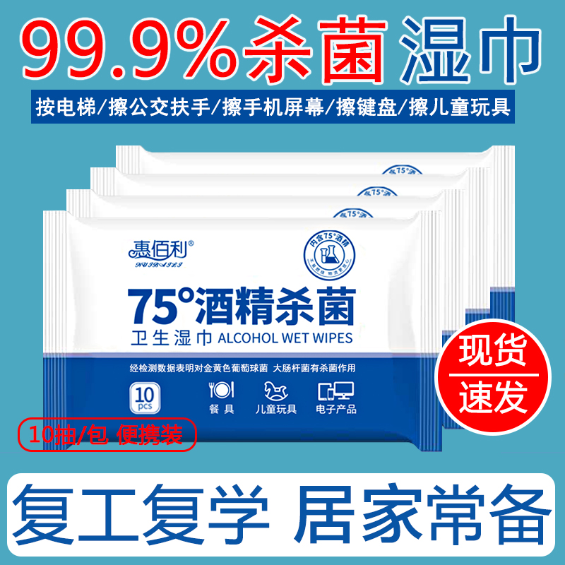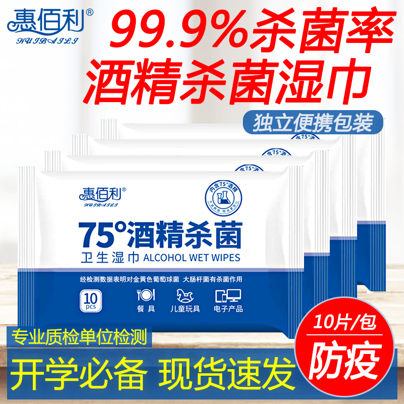 75 degree alcohol wipes small bag carry-on sterilization and antibacterial student portable wet wipes 10 pieces pumping 10 packs