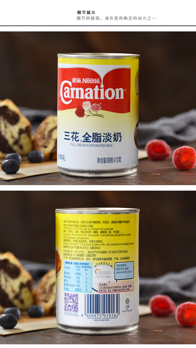 Nestle Sanhua full-fat evaporated milk 410g*5 cans of Sanhua milk evaporated milk Nestle Sanhua evaporated milk commercial milk tea shop dedicated