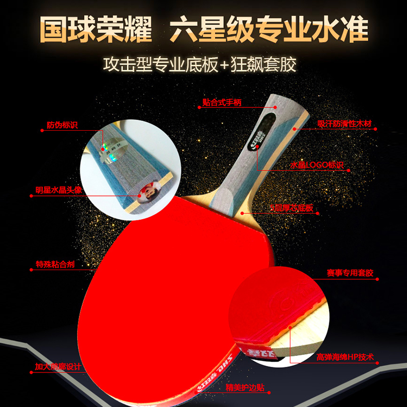 Red Double Joy Professional Class 6 Stars Mad Ping Pong Racket Double Beat 3456 Star Straight Ping-pong Shooting Flagship Store