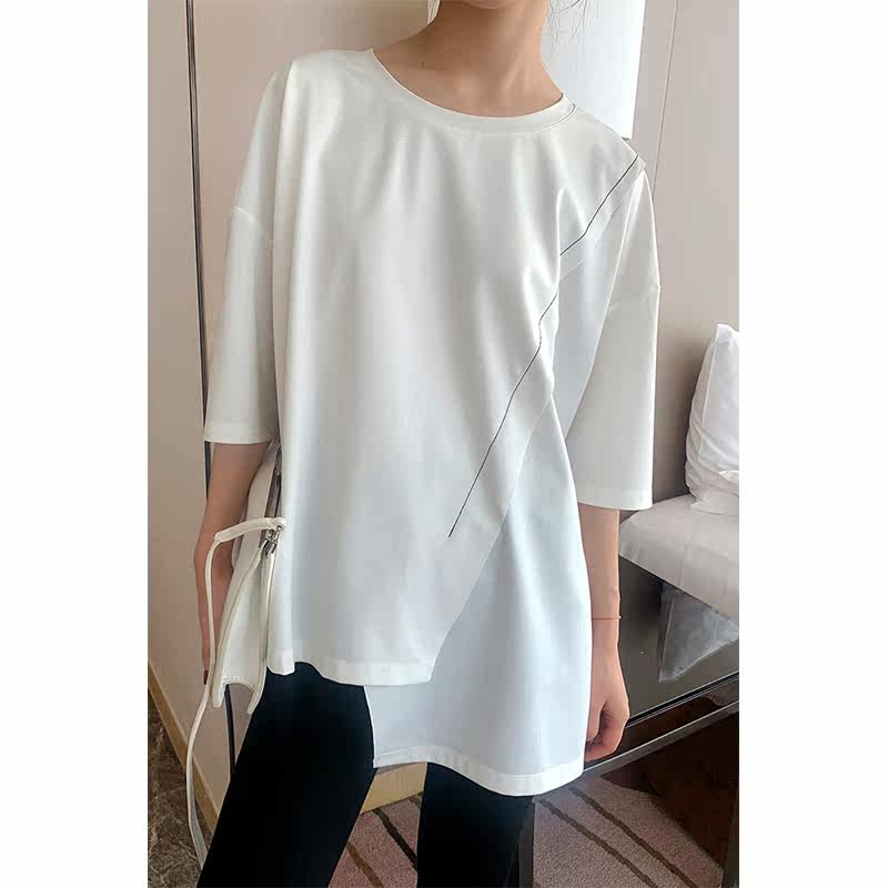 SOULKISS high-quality irregular design summer half-sleeve loose white t-shirt top female