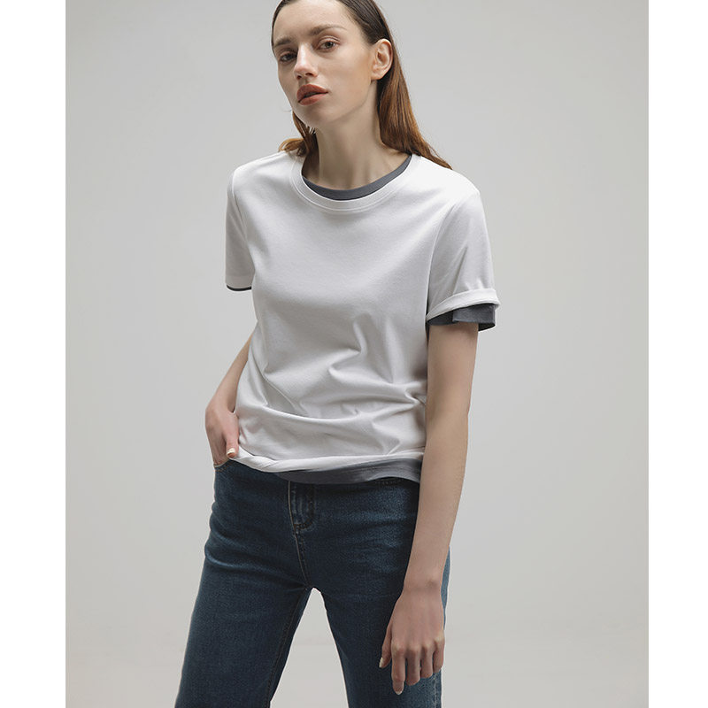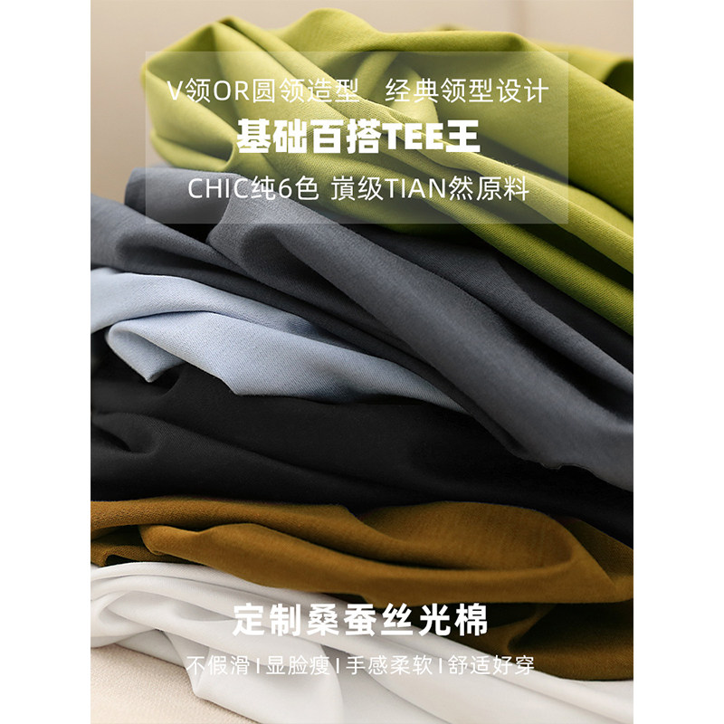 SOULKISS silk cotton fabric 6 colors all-match round neck T-shirt V-neck T-shirt female summer