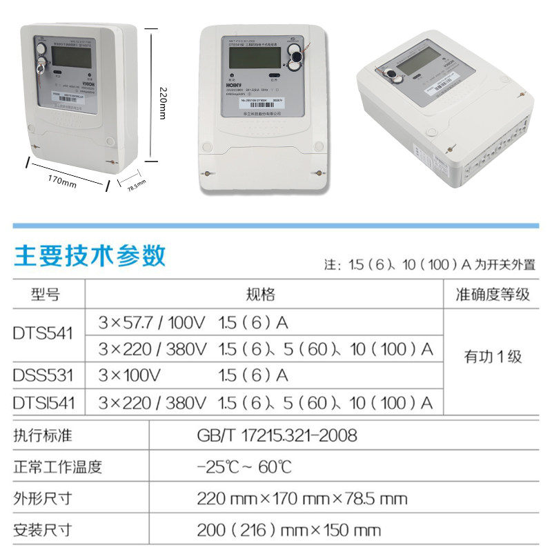 DTS541 new Hangzhou Huali three-phase four-wire three-wire active smart meter electronic meter remote power meter