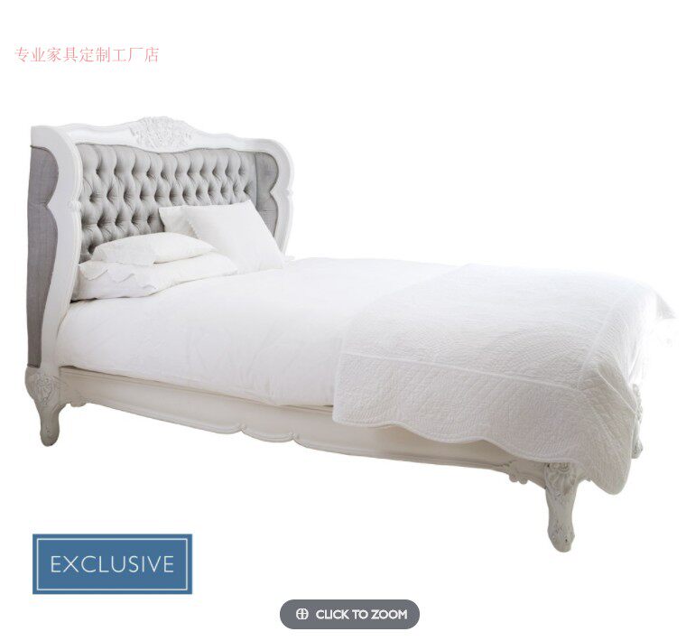 French antique and old carved white velvet interior soft bed model house villa furniture can be customized