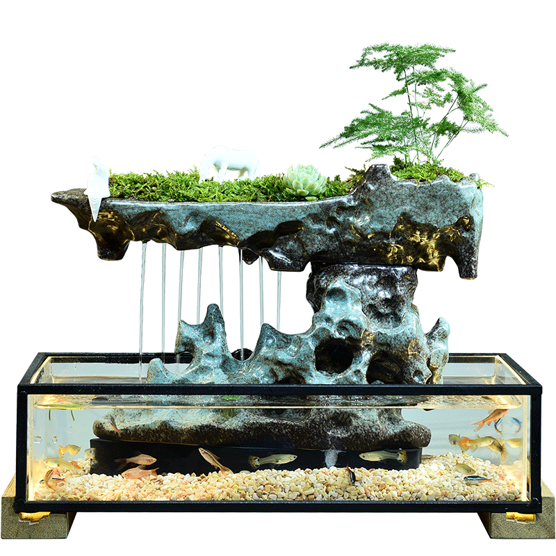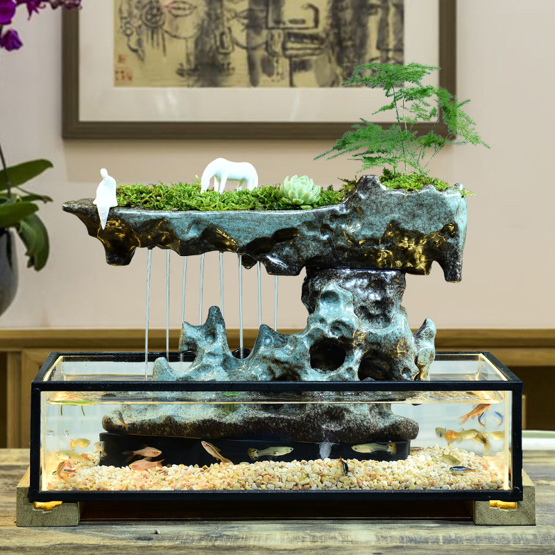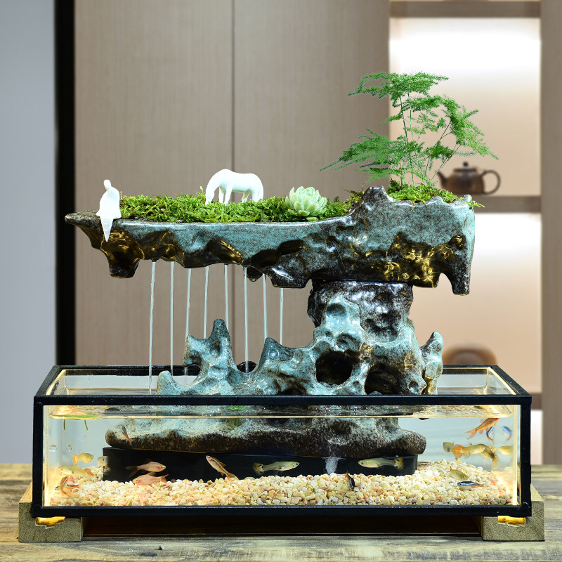 Creative Water Fountain Ornament Office Desktop Lucky Free Fish Tank New Chinese Style Feng Shui Wheel Opening Gift