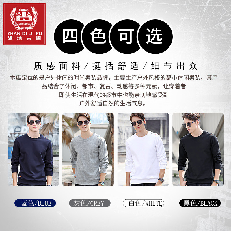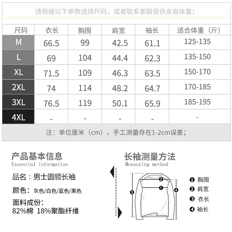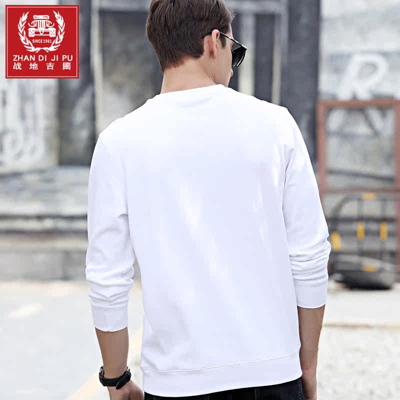 Autumn round neck long-sleeved T-shirt men's cotton loose white casual thick cotton men's trend bottoming shirt men's ins