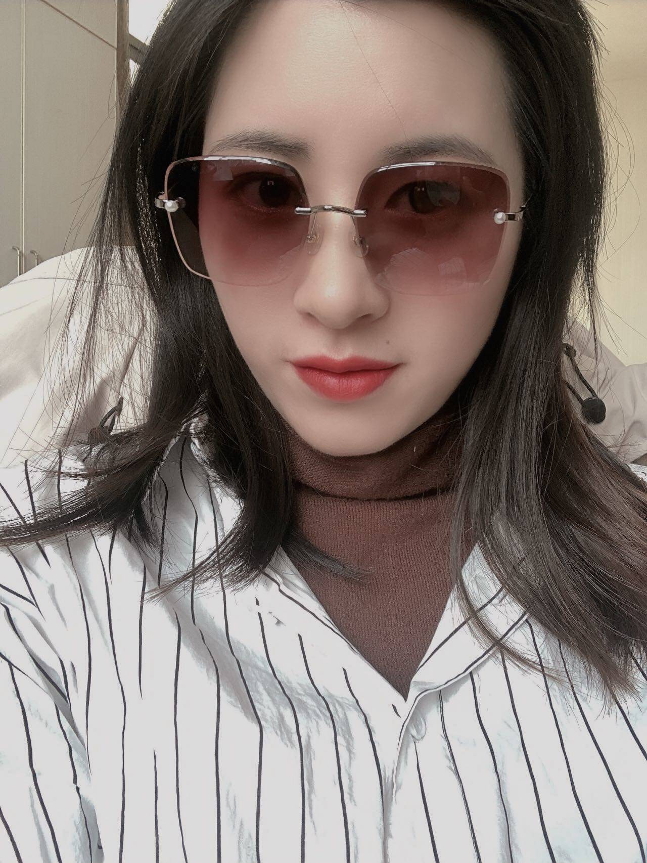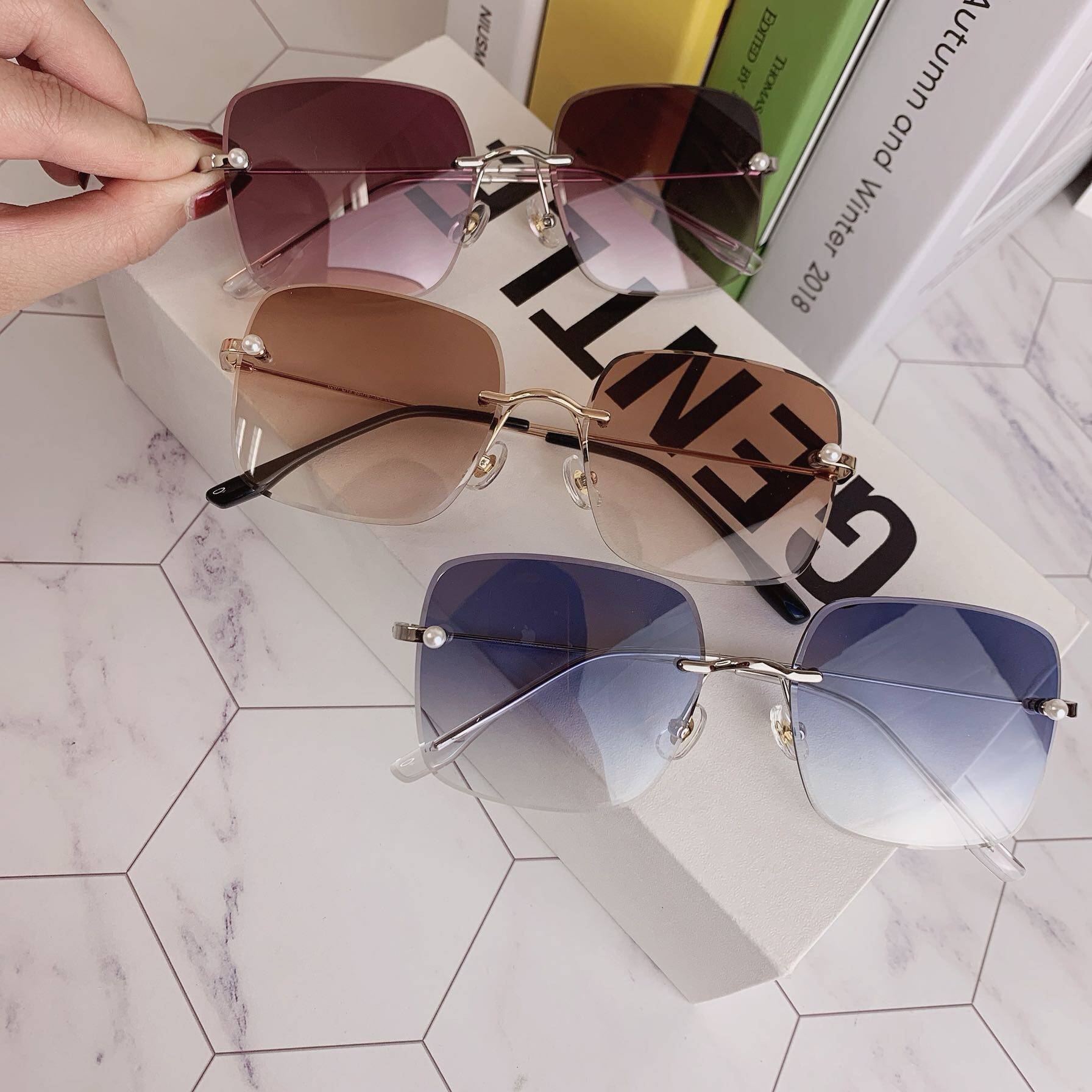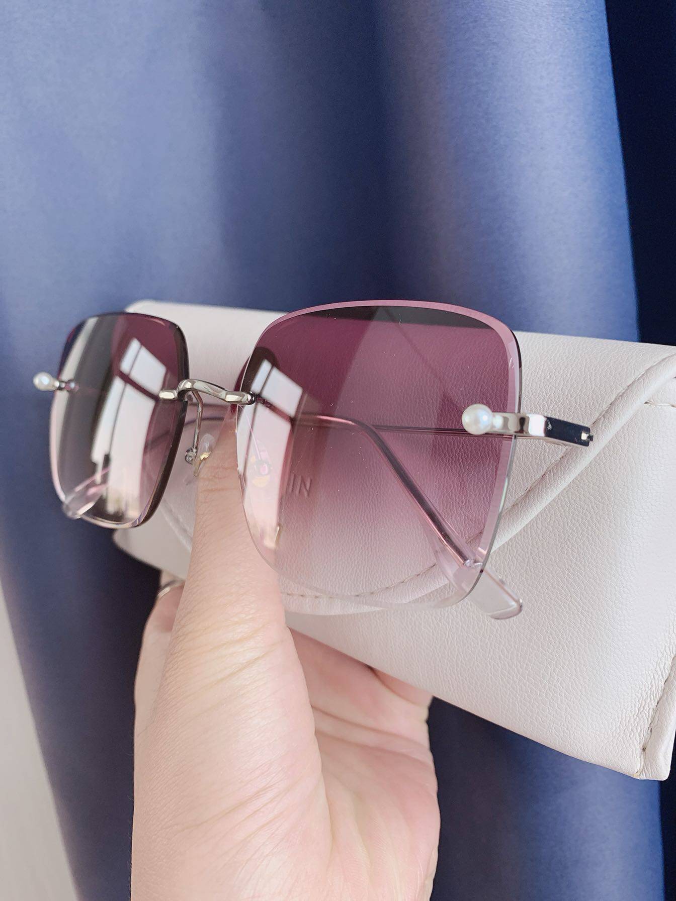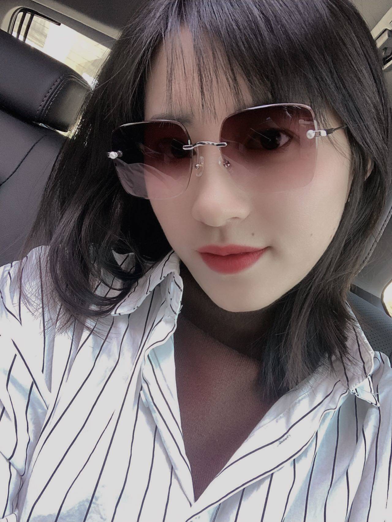 Diamond cut edge No frame sunglasses Female asymptotic color drive anti UV large face No frame with degree myopia glasses