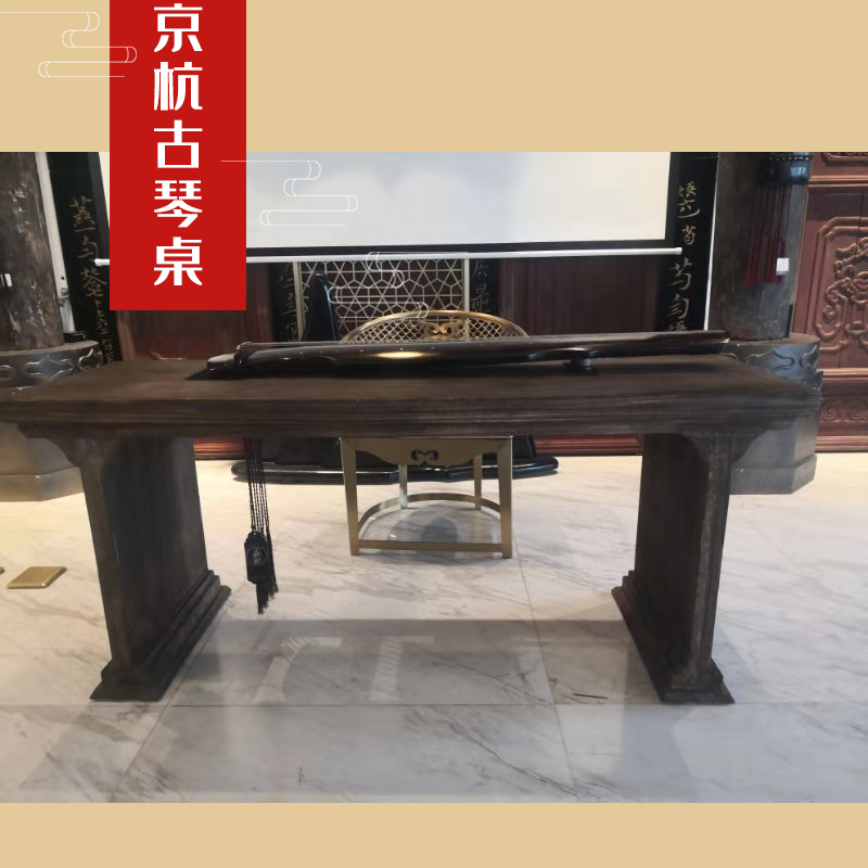 Old paulownia playing guqin table and stool solid wood thickened and widened piano table piano stool Guqin table tea table