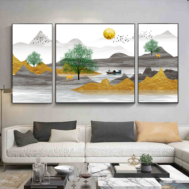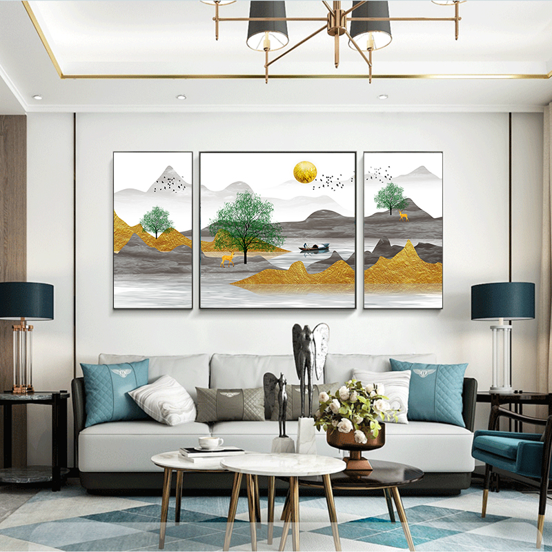 Nordic Living Room Decoration Painting Sofa Background Wall Triptych Composition Crystal Porcelain Painting Modern Light Lavish Hanging Painting Dining Hall Mural Painting