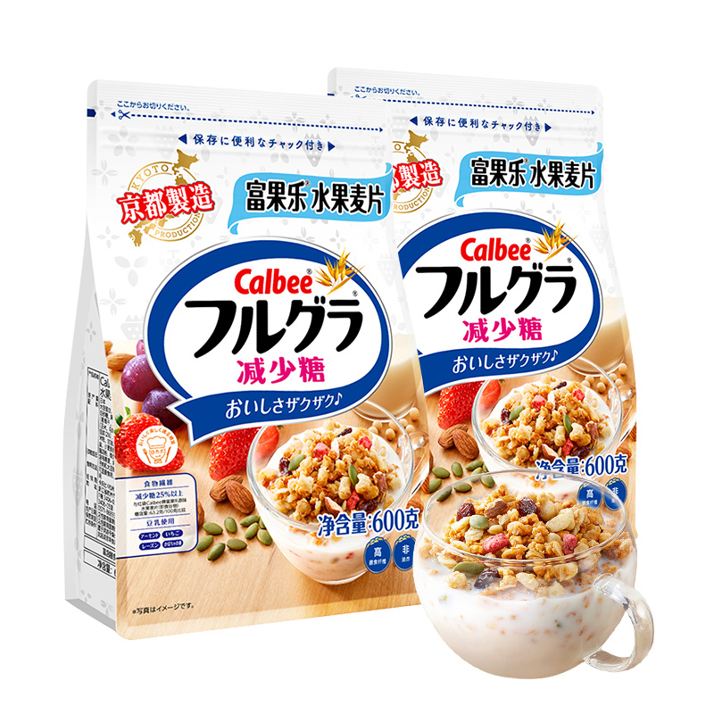 Calbee Calbee Reduced Sugar Fruit Cereal 600g*2 Fugole Low Oatmeal Edition Dinner Yogurt Original