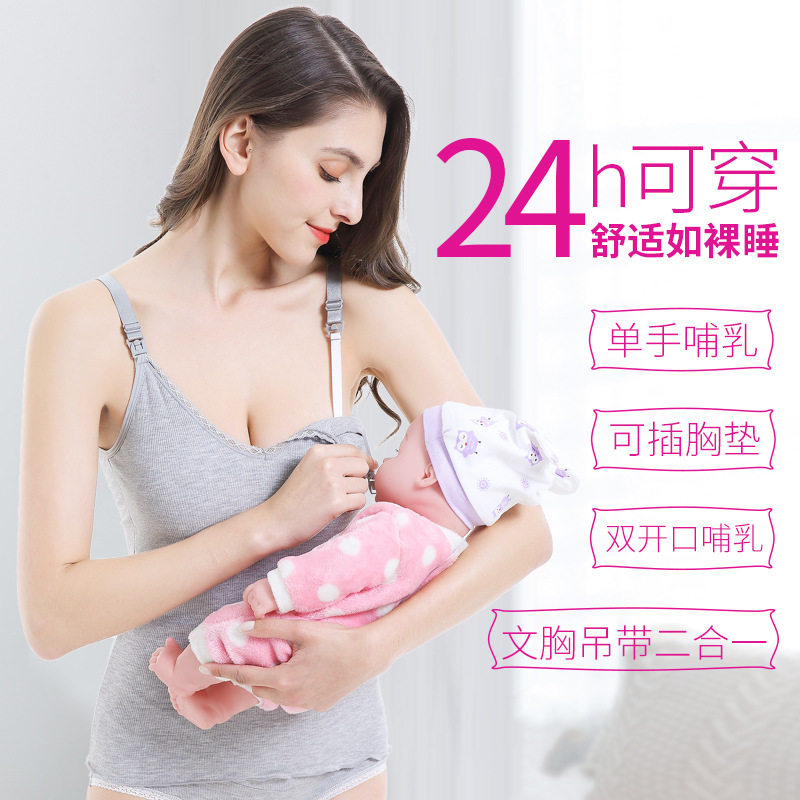 Modal breastfeeding suspender with chest pad postpartum feeding jacket Pu milk vest pregnancy thin solid color inner with spring and summer women