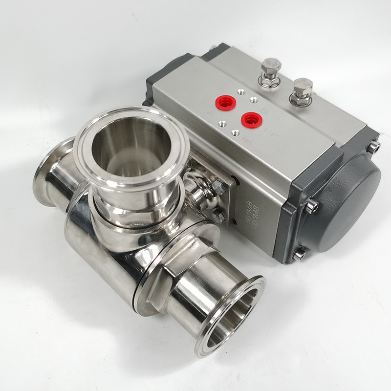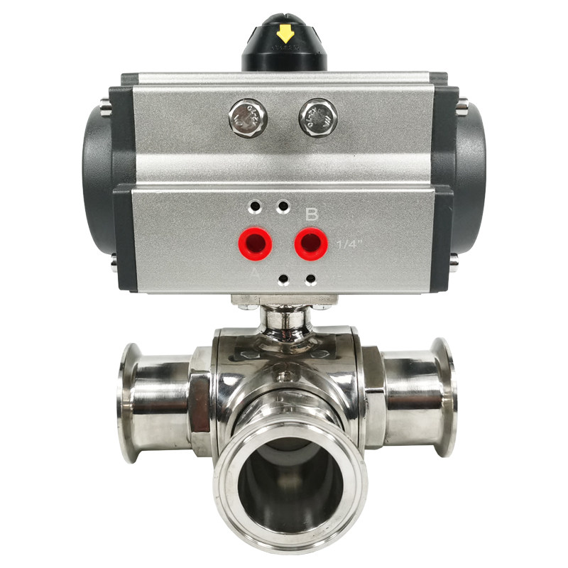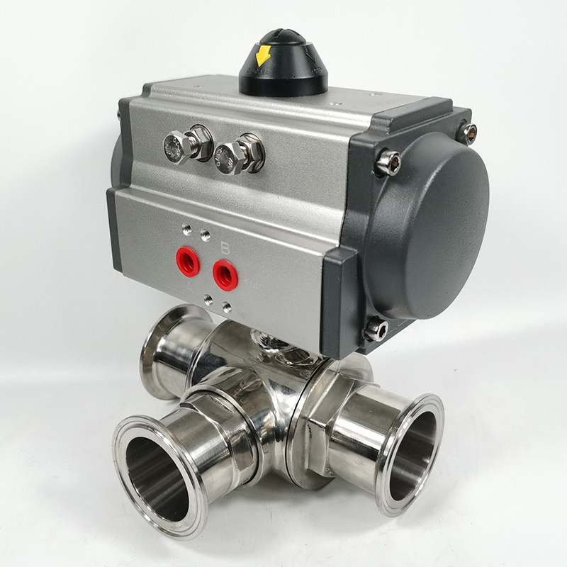Sanitary grade pneumatic quick fit three-way ball valve Q685F food stainless steel L T type hoop reversal valve steering valve