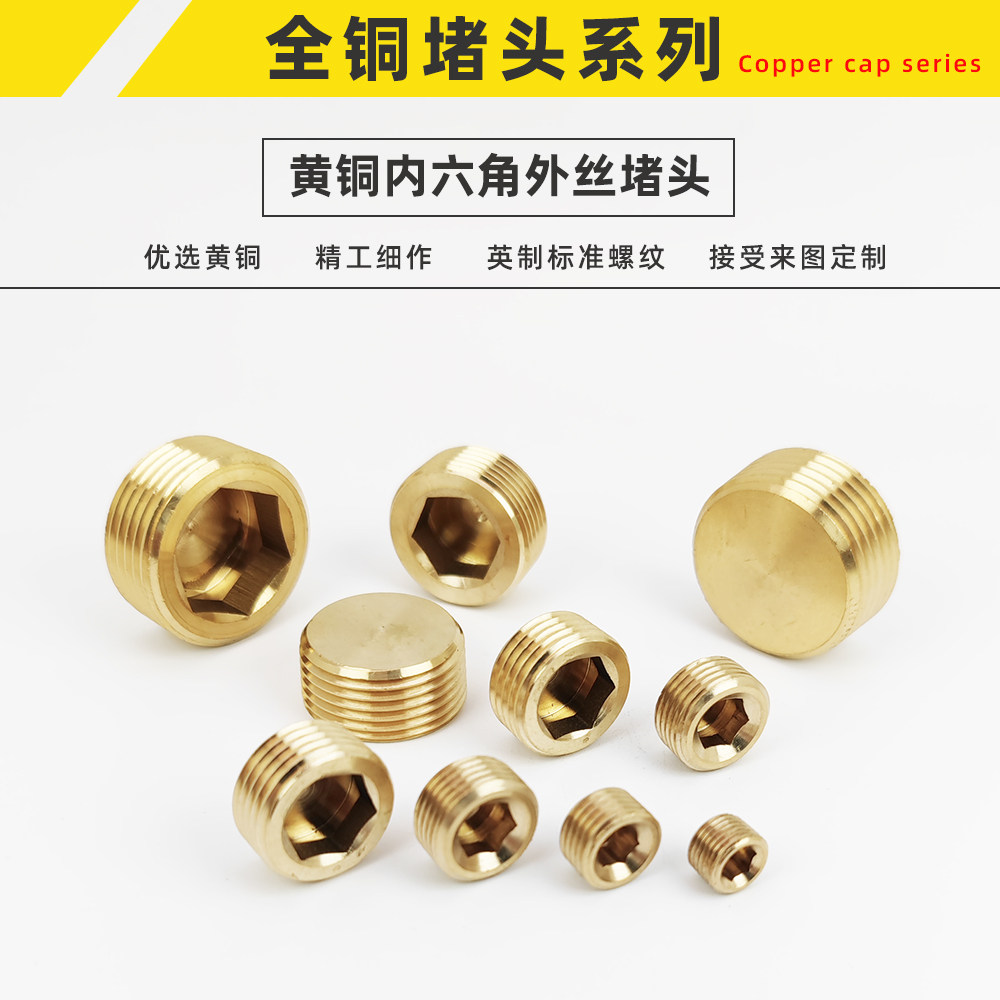 All-copper water pipe 4 minutes 6 minutes inner wire outer wire blocking plug wire blocking cap wall hole plug head four-point stuffy head pipe cap blocking plug