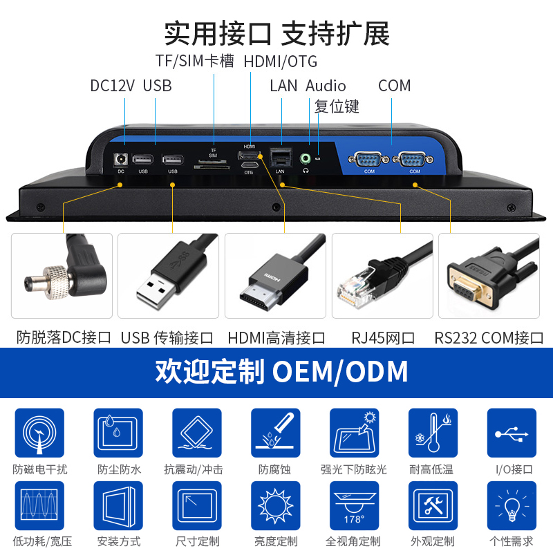 Jiaweishi 10 12 15 17 19 21 "Android Industrial Control Touch Screen All Embedded Industrial Tablet Wall Hanging Multimedia Conference Inquiry PLC Configuration Dust Prevention