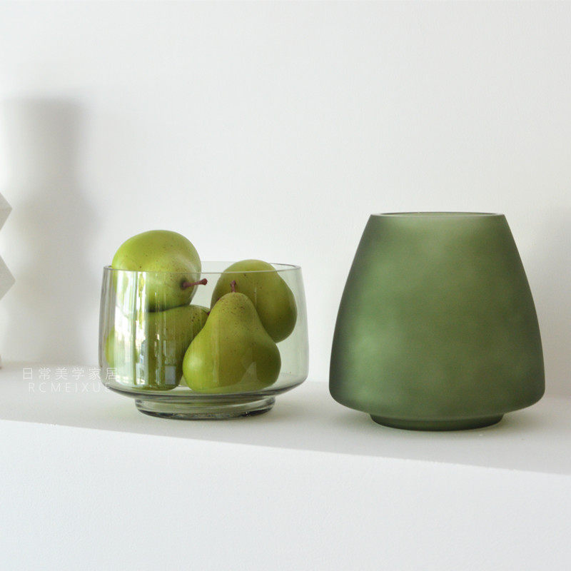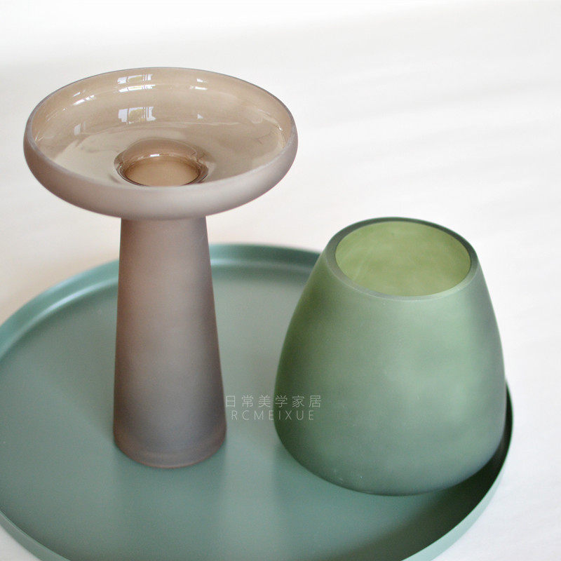 Modern minimal frosted glass vase home soft software decoration of decorative fruit plate drying flower
