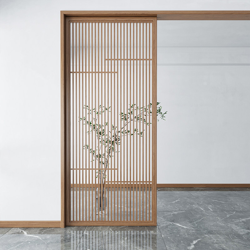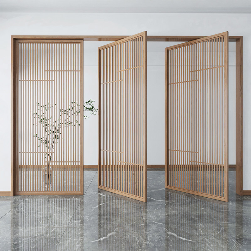 New Chinese style solid wood screen partition decoration living room hotel wooden grid fence wooden 360 rotating custom partition wall