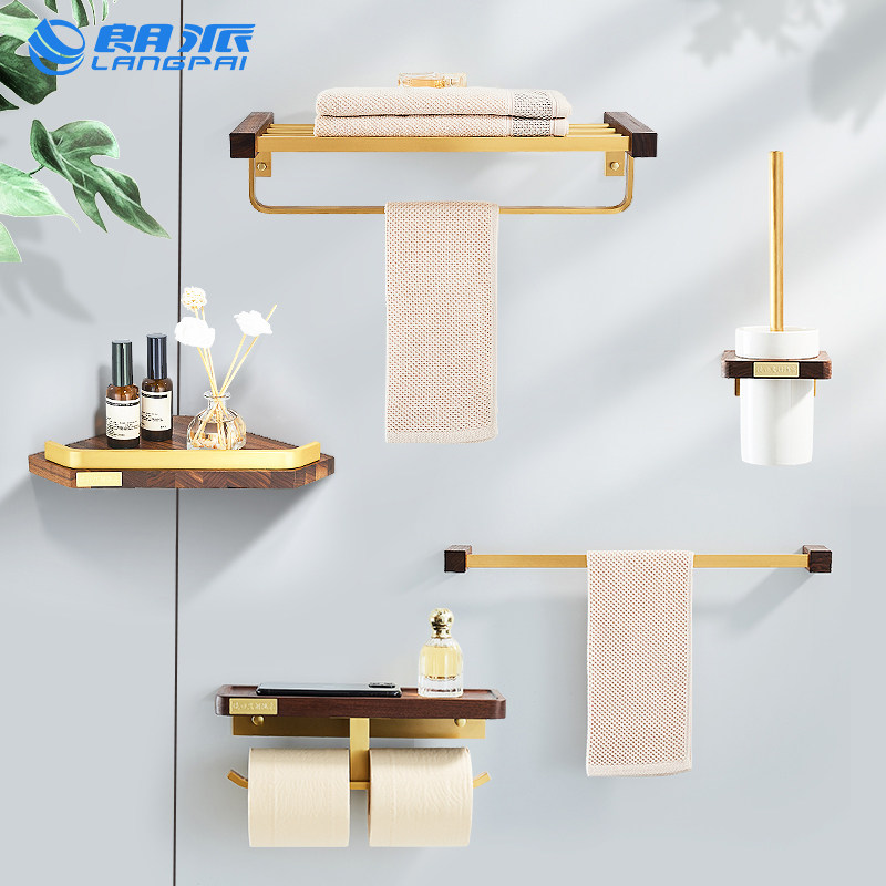 Langpai punch-free light luxury solid wood towel rack powder room towel rack bathroom rack new Chinese bathroom hanging rod