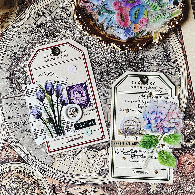 Judy's new hand-made vintge handbook material TN Light Ancient Watercolor Plant 58 pieces 20305