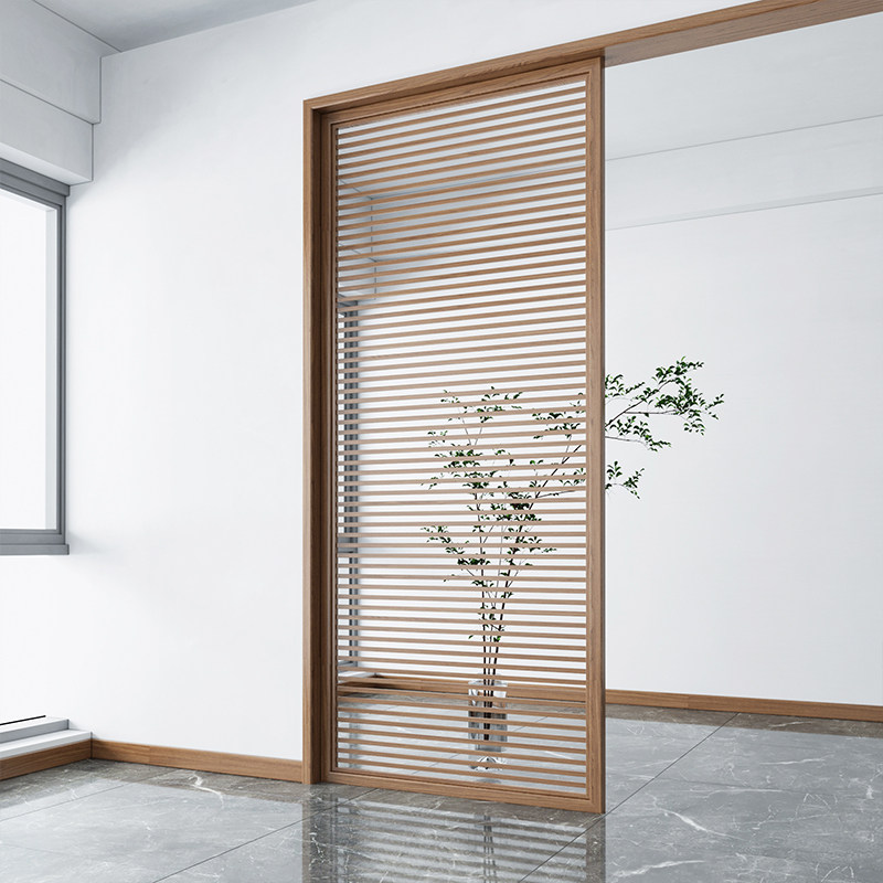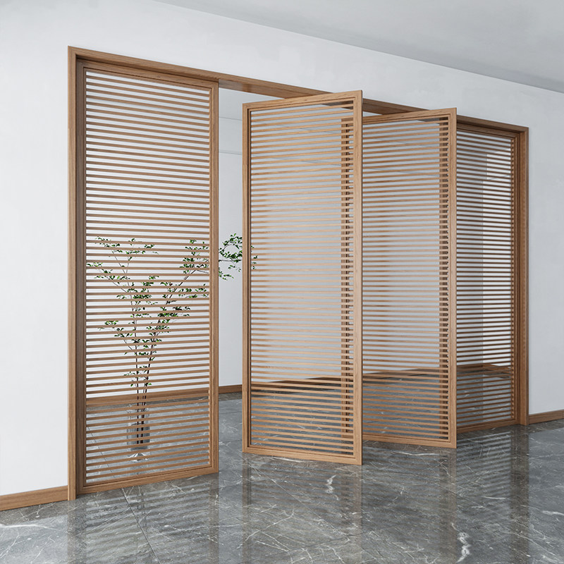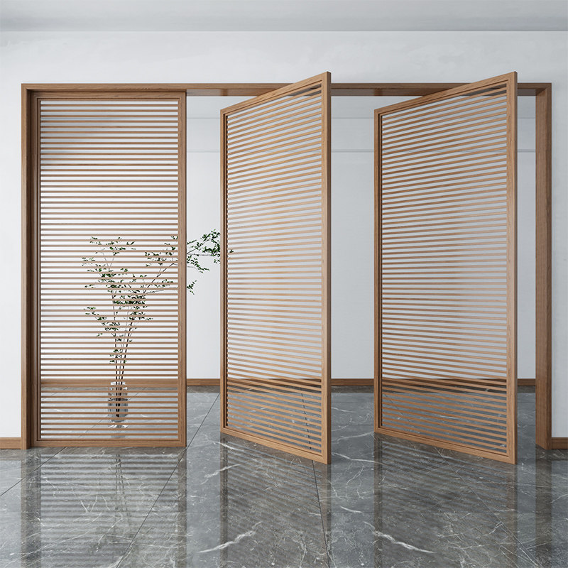 Modern solid wood screen partition grille hollow decoration living room hotel entrance porch 360 rotating wooden seat screen
