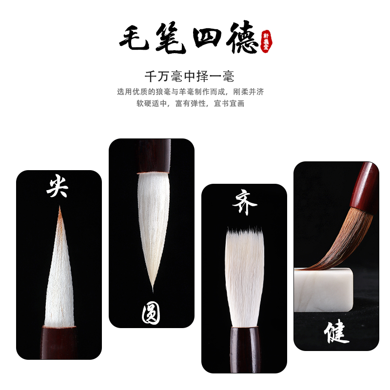 Brush pure wolf high-grade professional set and milli yang milli large and medium size letter Book Lishu Book Beginner Chinese Painting Gong Pen Painting Studio Four Treasures Gift Box Brush Pen Ink Paper Brick Set