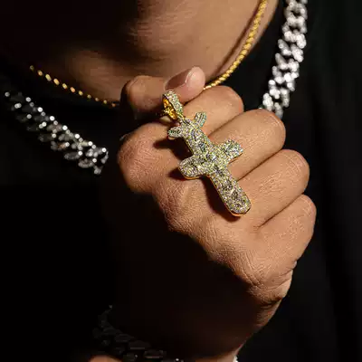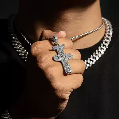 ICEGANG European and American hip hop TravisScott label cross men and women pendant full diamond hiphop necklace