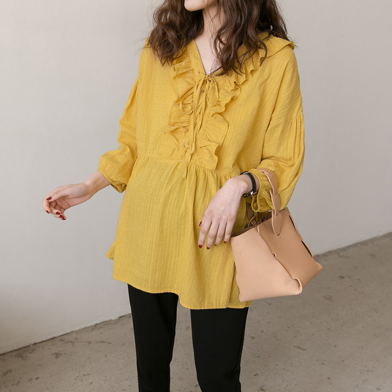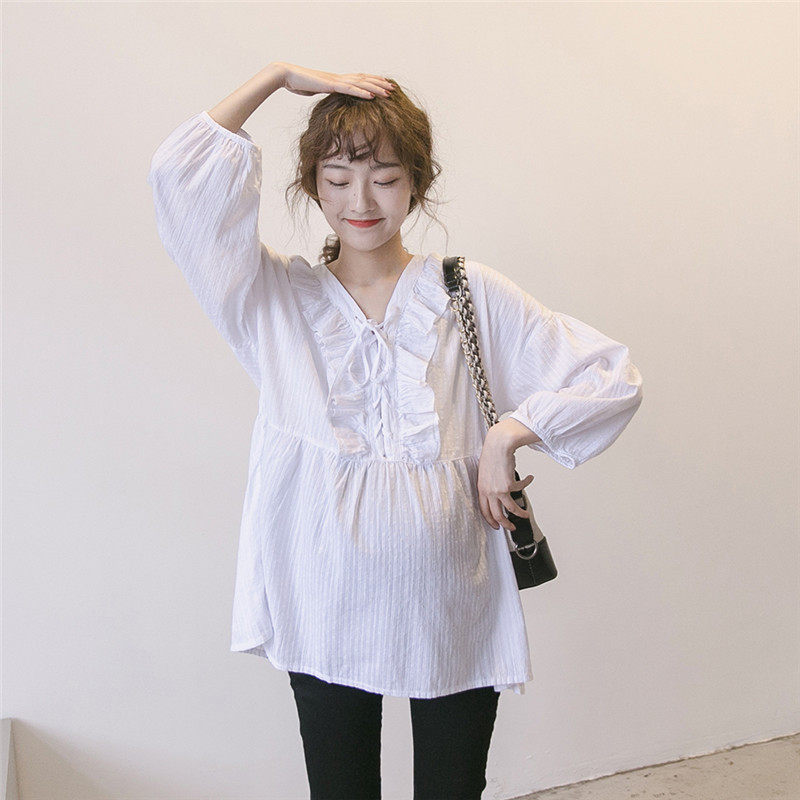 Pregnant women's tops Spring and summer fashion trend mom loose age-reducing doll shirt Medium-long Western maternity clothes spring and summer shirts