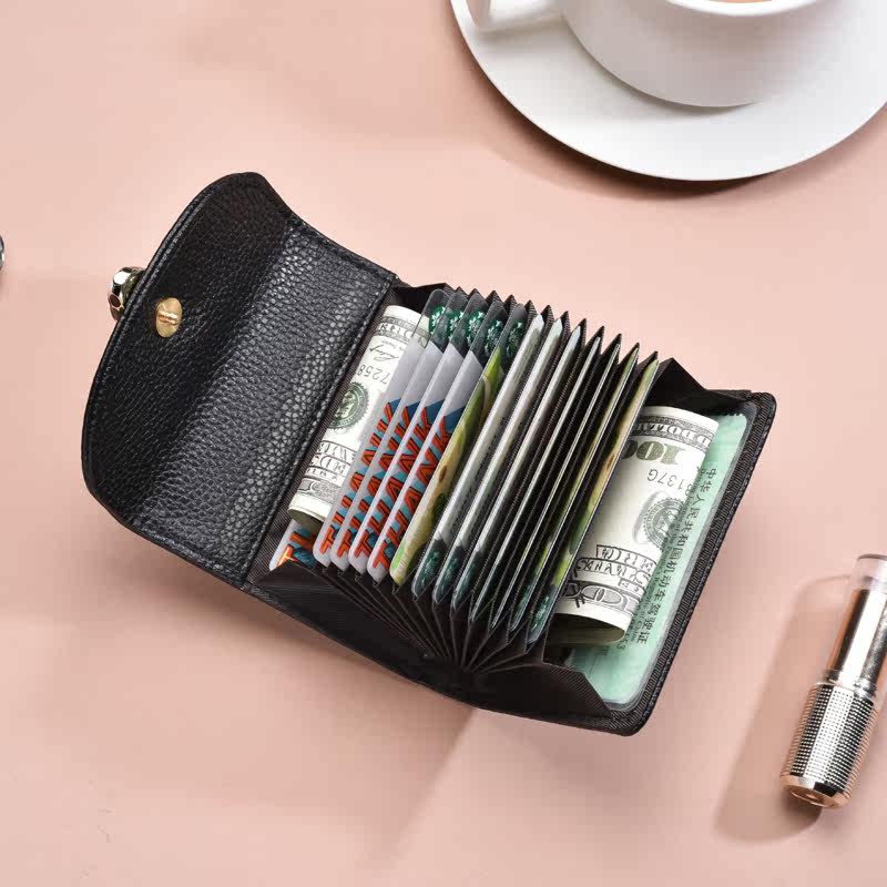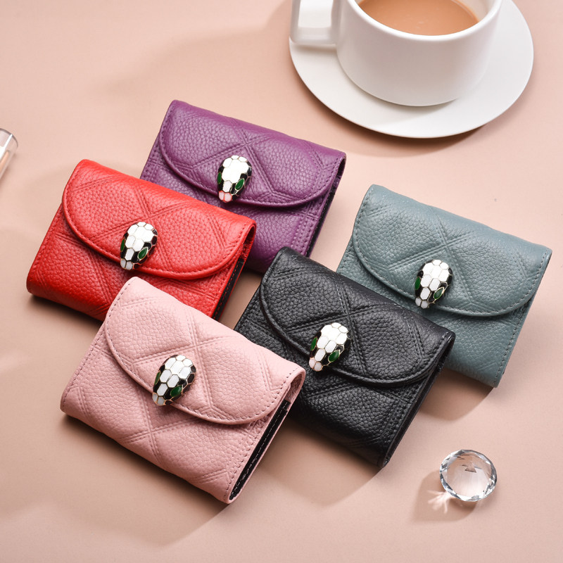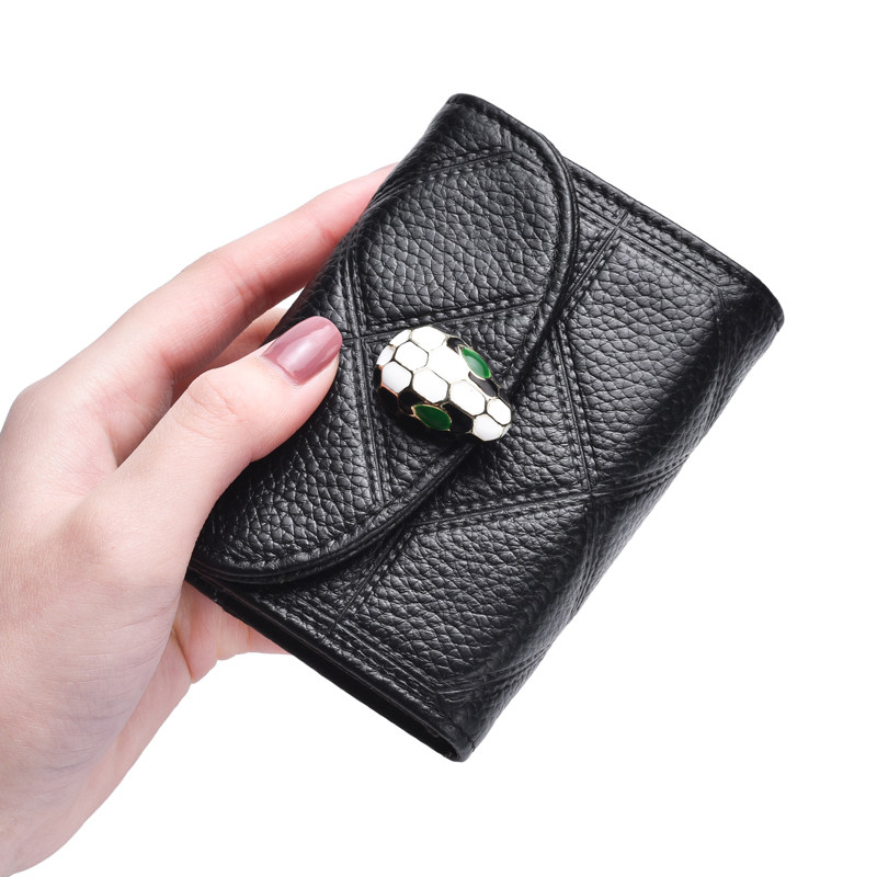 2021 new serpent genuine leather female type card bag small sleeve card clamping large capacity multi-clamping document card bag tide