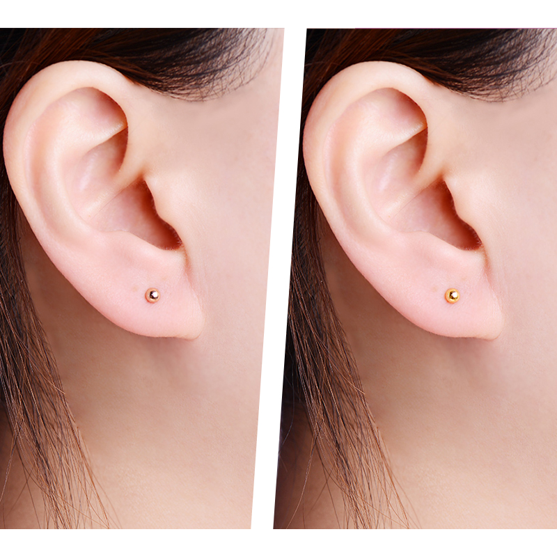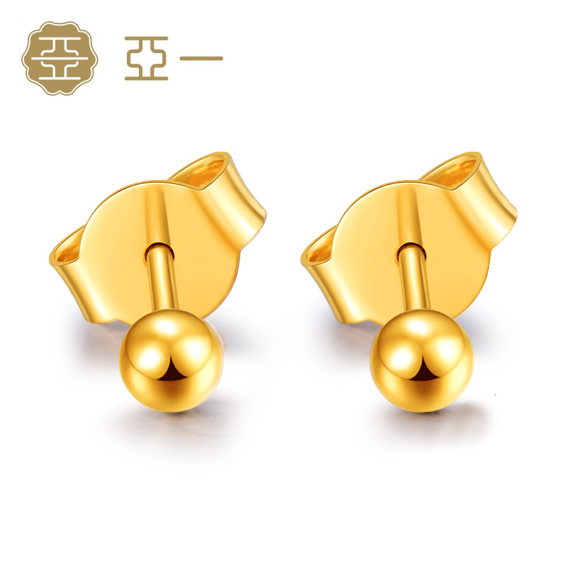 Yayi 18K Gold Stud Earrings Color Gold Fashion Women's Glossy Peas Small Round Bead Earplugs for Girlfriend Temperament Versatile Earrings