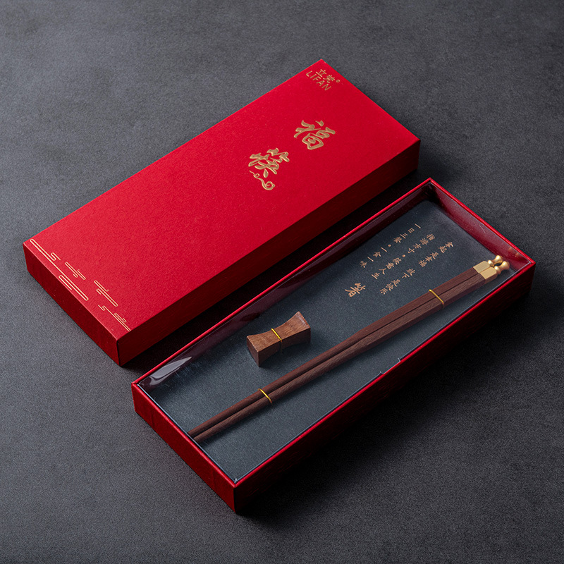 Red Sandalwood China Wind Upscale Wedding Festive and Festive Chopsticks 10 Double Dress Companion Gift customizable lettering gift box dress