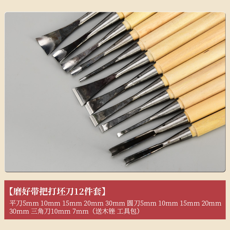 Wood carving tools Dongyang hand-carved wood carving knife root carving tea tray base made digging spoon digging pan blank knife 12 pieces set
