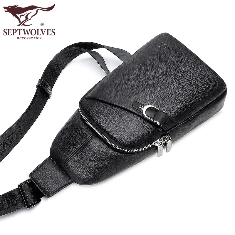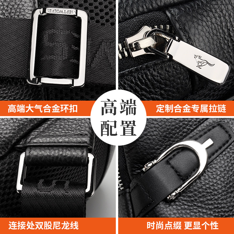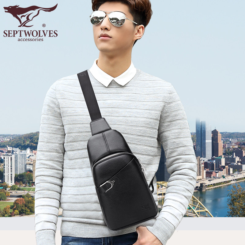 Seven wolf breast bag male leather shoulder bag fashionable youth slanted shoulder carrying bull leather outdoor casual breast bag