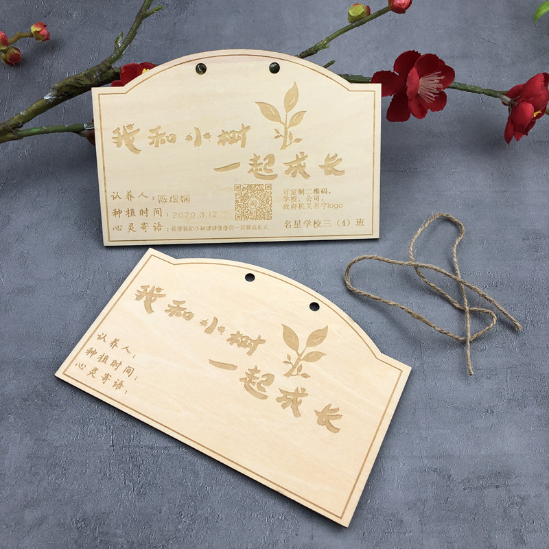 10 pieces of custom wooden hanging board School Arbor Day tag Tree adoption card Plant tag tag card