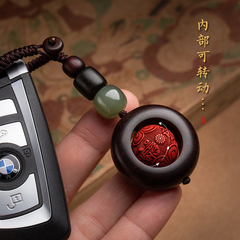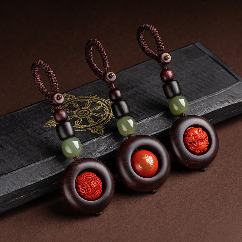 Dashan Hall Fidelity Cinnabar Good Luck Pearl Sandalwood Car Keychain Pendant Men and Women Belong to the Year of the Tiger Zodiac Buddha
