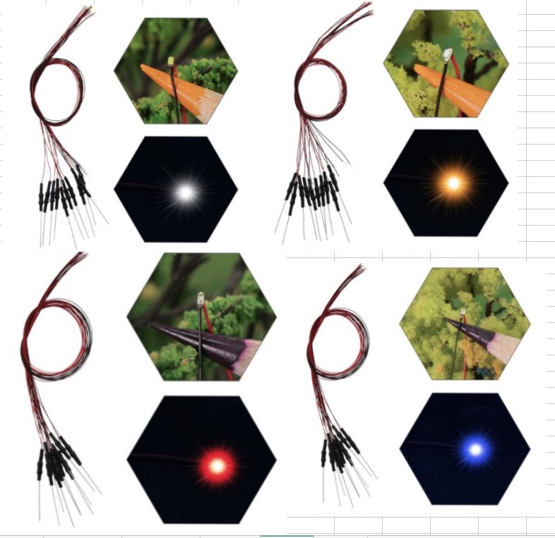15 packs DIY train car model toy LED luminous patch small lamp with wire model building block model