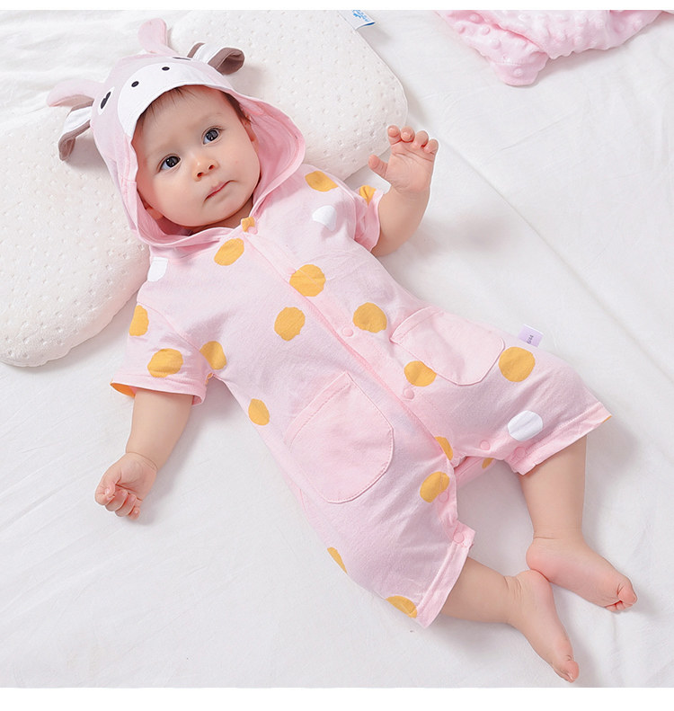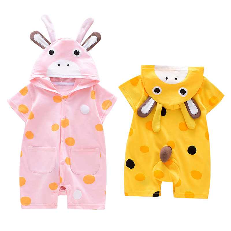 Baby summer jumpsuit men's net red baby cotton clothes women's short-sleeved rompers newborn thin pajamas summer clothes