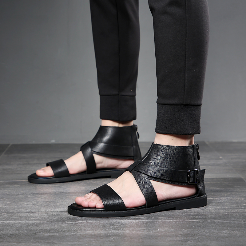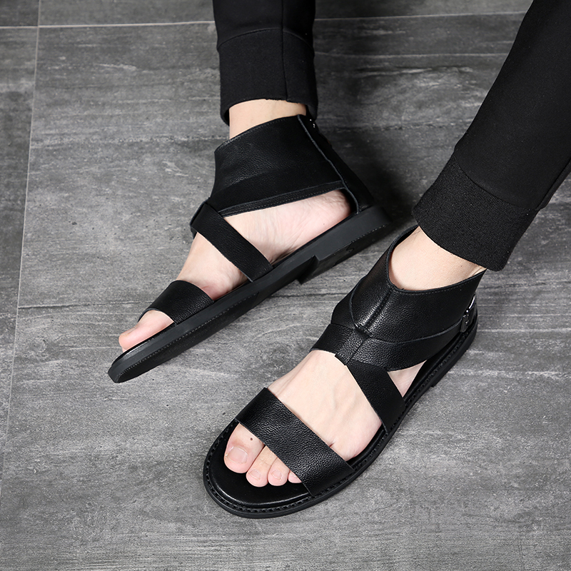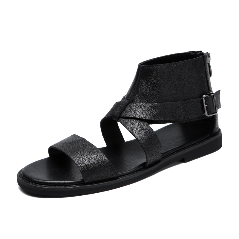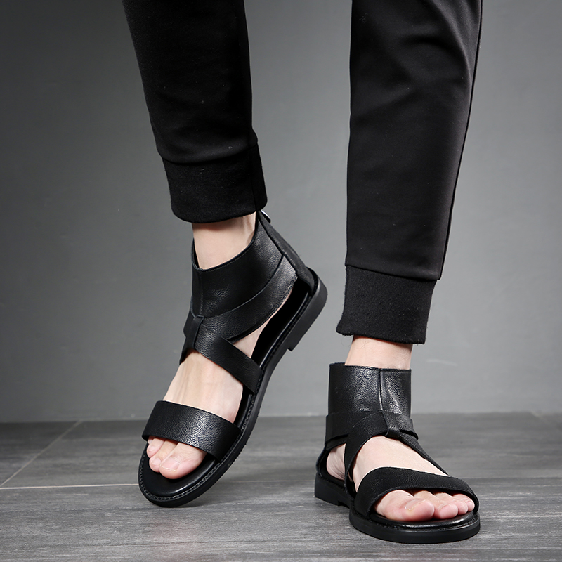 Summer Roman sandals High-cylinder leather sandals men's superior sandals Genuine Leather Hollowed-out Youth Beach Shoes Casual Men's Shoes