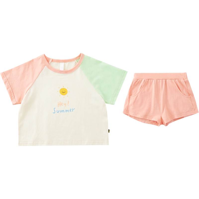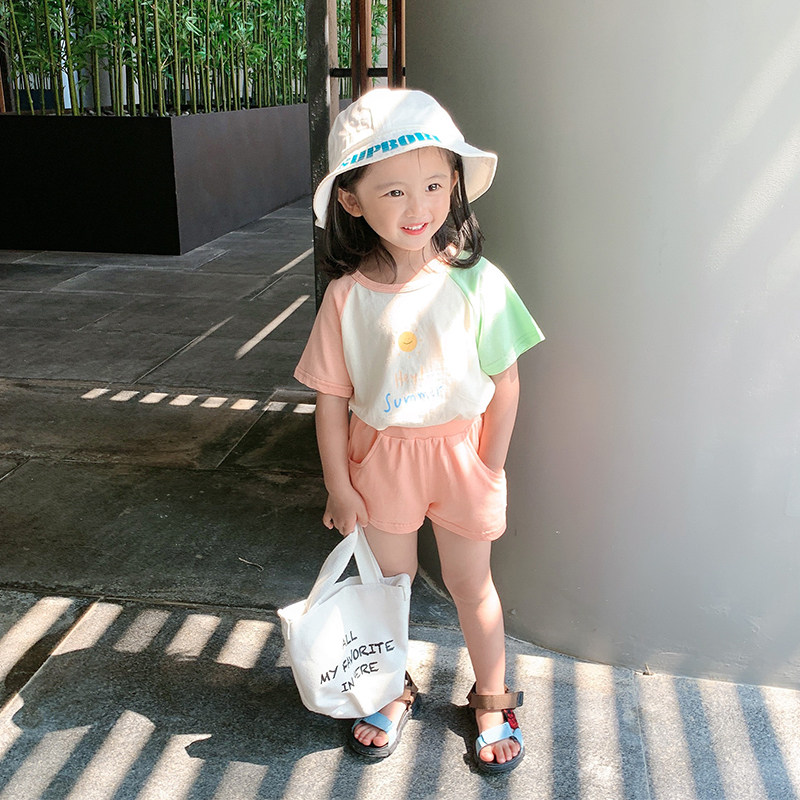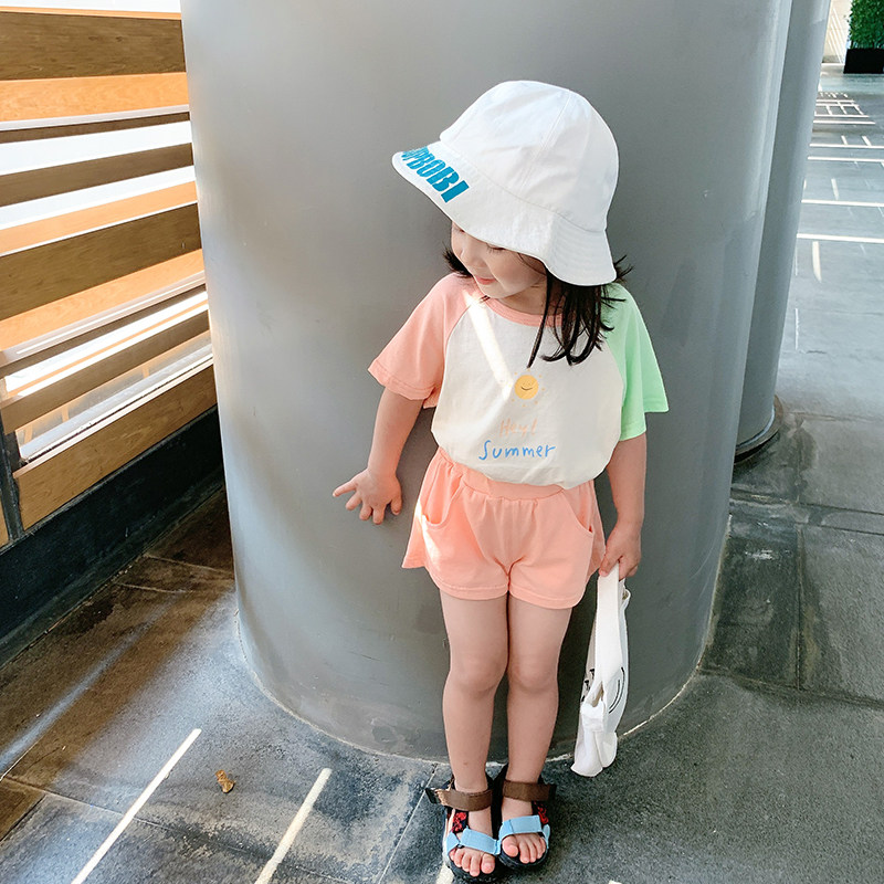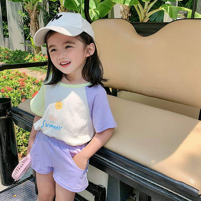 Yangmeijia children's clothing 2022 summer new girls' fashion hit color suit baby thin T-shirt shorts two-piece set
