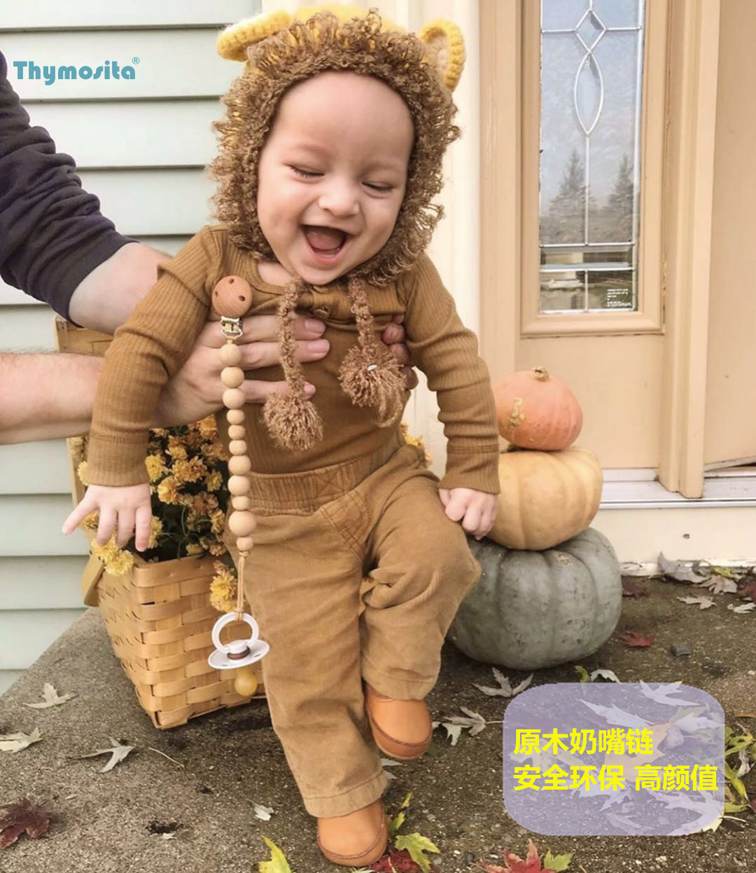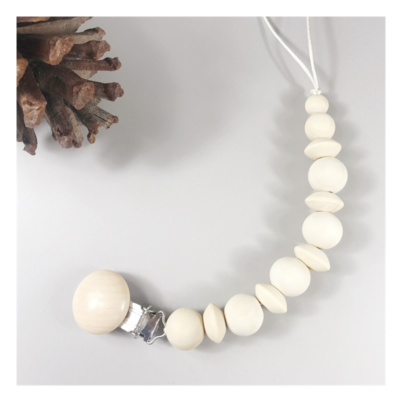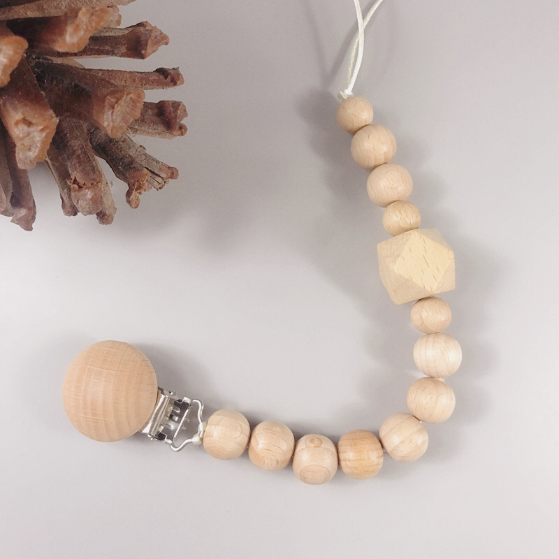 Woody pacifier chain eco-friendly baby tooth glue anti-fall chain pure natural wood beads DIY pacifier chain-Taobao